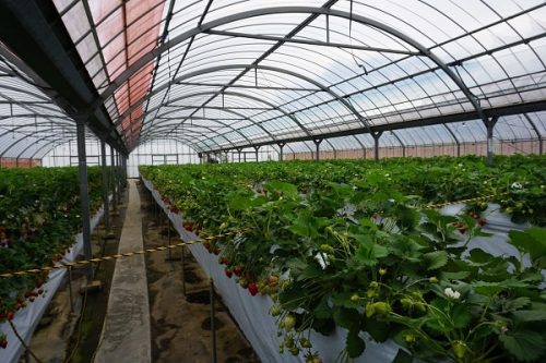 ビニールハウスの中はかなり大きくて、いちごがいっぱい!
