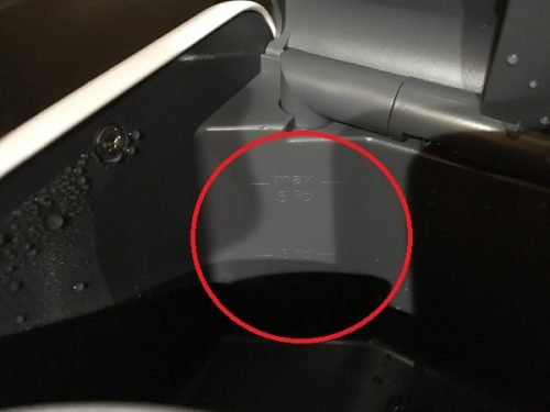 水を入れるタンクの内側には3杯と5杯のところに目盛りが付いています。