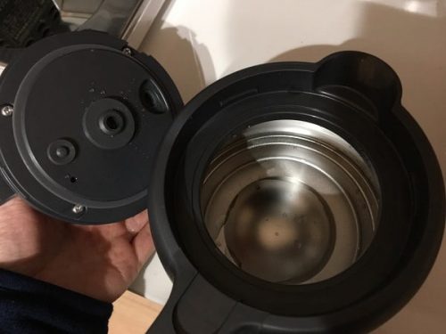 ポットのフタを外すと、しっかり手を入れて洗えるくらい広口。