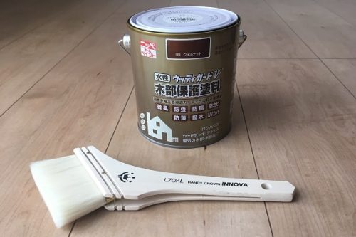 我が家が購入したのは、ニッペの「水性ウッディガード」ウォールナットの0.7リットル。