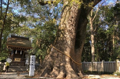 伊弉諾神宮は本殿もさることながら、本殿向かって左横に位置する「夫婦の大楠(めおとおおくす)」が有名なパワースポットです。
