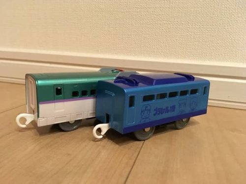 今回の入場記念品は、はやぶさの中間車両と、プラレール博オリジナルの中間車でした。