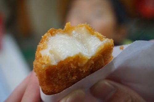 日本海さかな街の「はしごめし」にも選ばれていた、「たにでの店」のカニクリームコロッケ(200円)を食べることに。