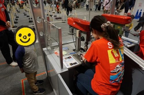 アトラクションゾーンで大混雑するのは、「トミカミニミニドライバー工房」と「トミカ組立工場」です。