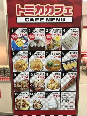 館内にはトミカカフェがありますが、しっかり食べるには物足りないメニュー。