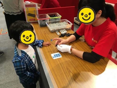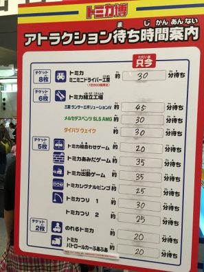 一番人気は『トミカ組み立て工場』のランサーエボリューションのようで、最長45分待ちでした。